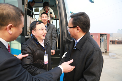 董事长、总经理余华强等公司领导在金阳石公司门前迎候参观客商