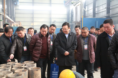 董事长余华强、副总经理徐化林陪同客商参观金阳石生产线