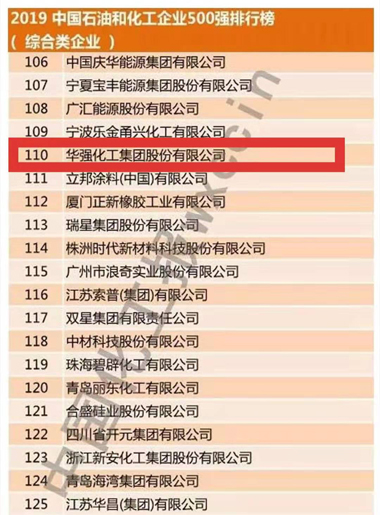 8月28日,2019中国石油和化工企业500强发布会暨增强与提升——中国化工大企业发展高峰论坛在黑龙江安达市举行,会上发布了2019中国石油和化工企业500强榜单,我公司位列110位。 榜单由中国石油和化学工业联合会与中国化工企业管理协会联合发布,近500名参会代表见证。我公司在此次500强排名中比去年上升了37位,从147位升至110位。